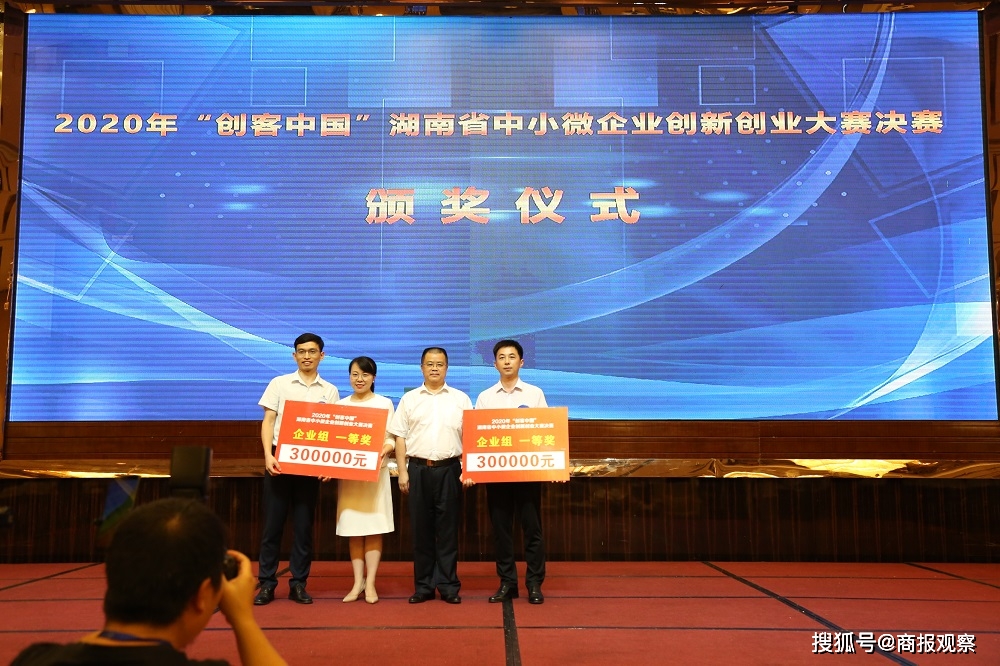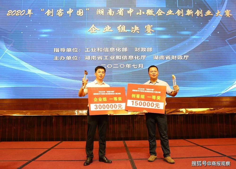 据介绍,2020年“创客中国”湖南省中小微企业创新创业大赛是由工信部、财政部统一安排部署,由湖南省工信厅、省财政厅联合主办,于今年2月启动。大赛分创客组和企业组,全省14个市州2100多家企业参赛,创客组前10名和企业组前20名进入全省现场决赛。当天,创客组共评选出一等奖1名,二等奖3名,三等奖6名;企业组共评选出一等奖2名,二等奖6名,三等奖12名。